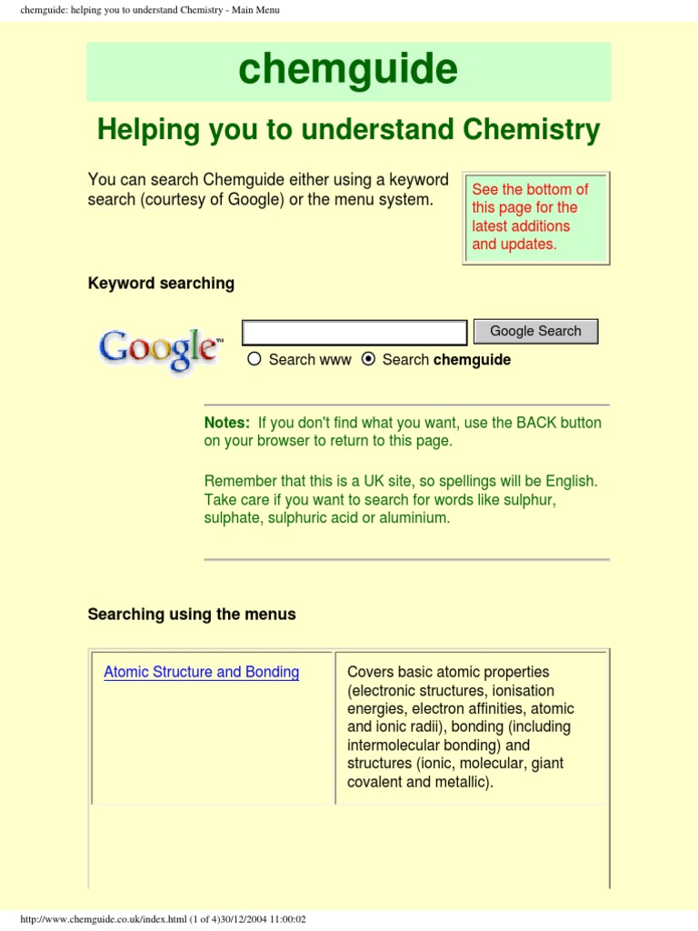 Chemguide Cie A Level Chemistry Support Learning Outcome 11 2 F