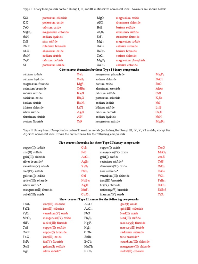 Naming Chemical Compounds - Answers Name the following ionic compounds. Chemical Formula of Binary Ionic Compounds Sheet 2 ANSWERS No. Calcium selenide CaSe 1305-84-6.