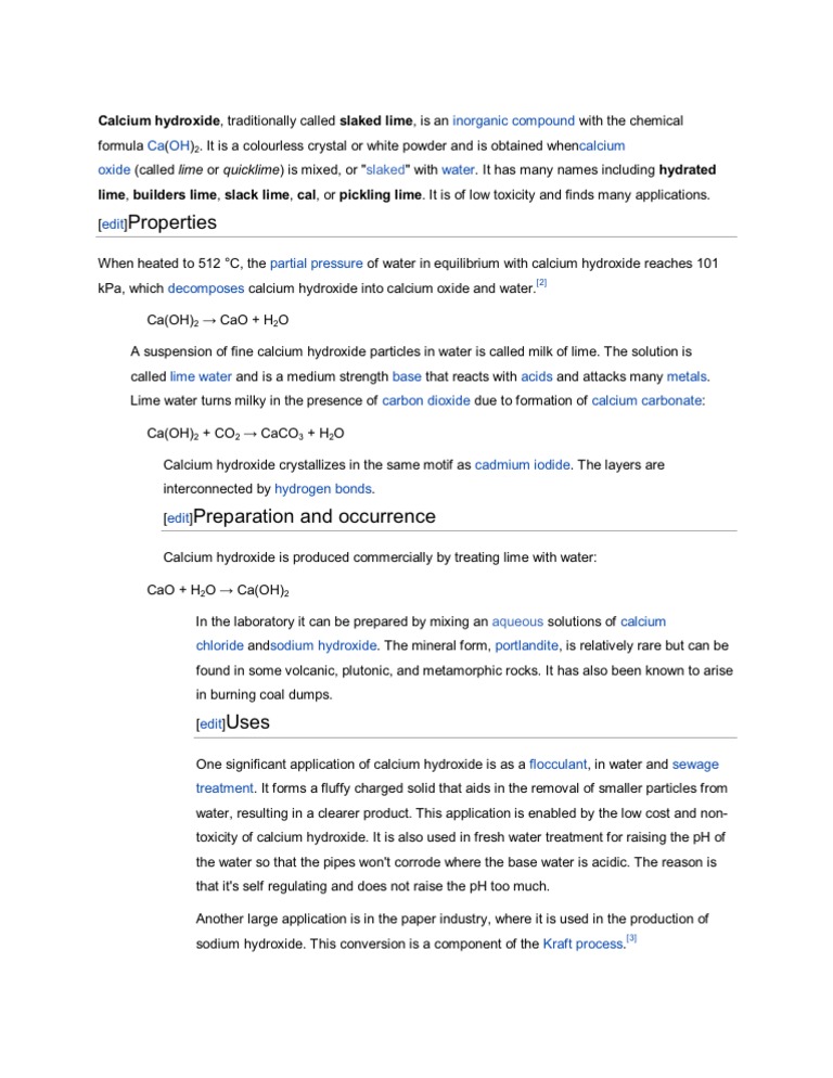 Calcium Hydroxide Slaked Lime Water Chemicals Codex The National Academies Press