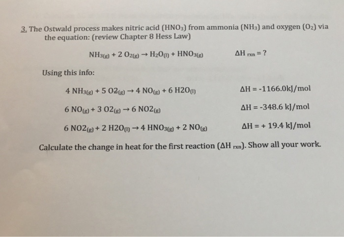 3 The Ostwald Process Makes Nitric Acid Hno3 From Chegg Com