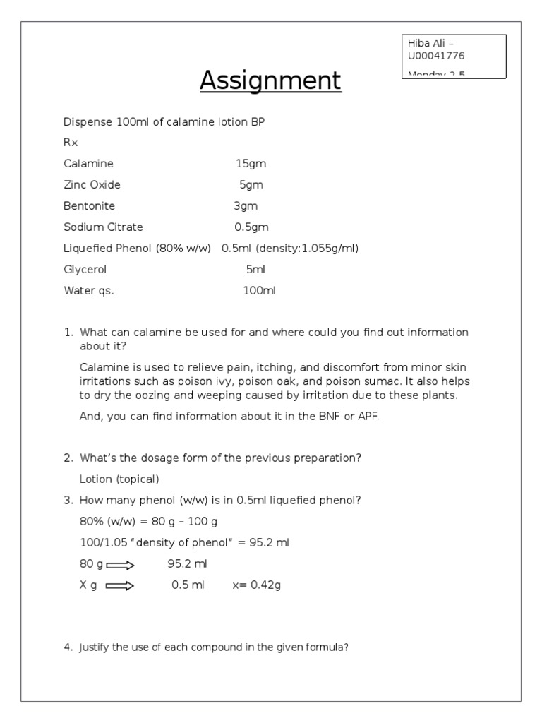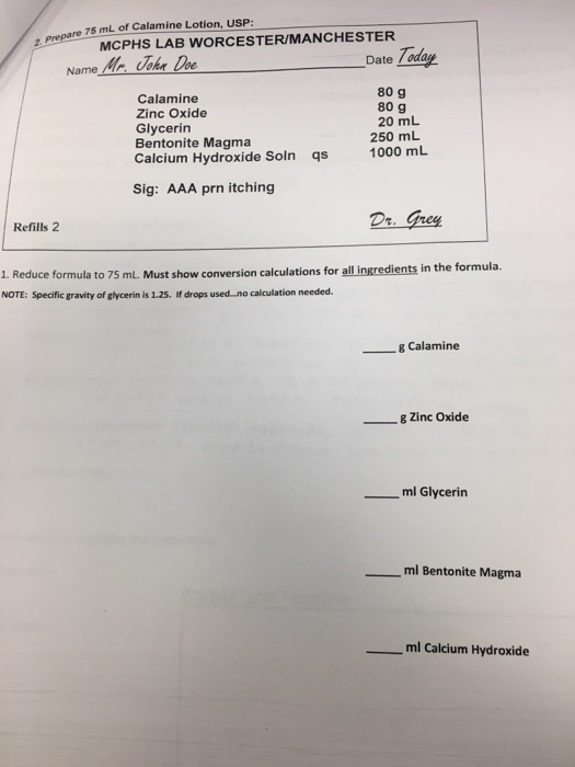 75 Ml Of Calamine Lotion Usp Mcphs Lab Chegg Com