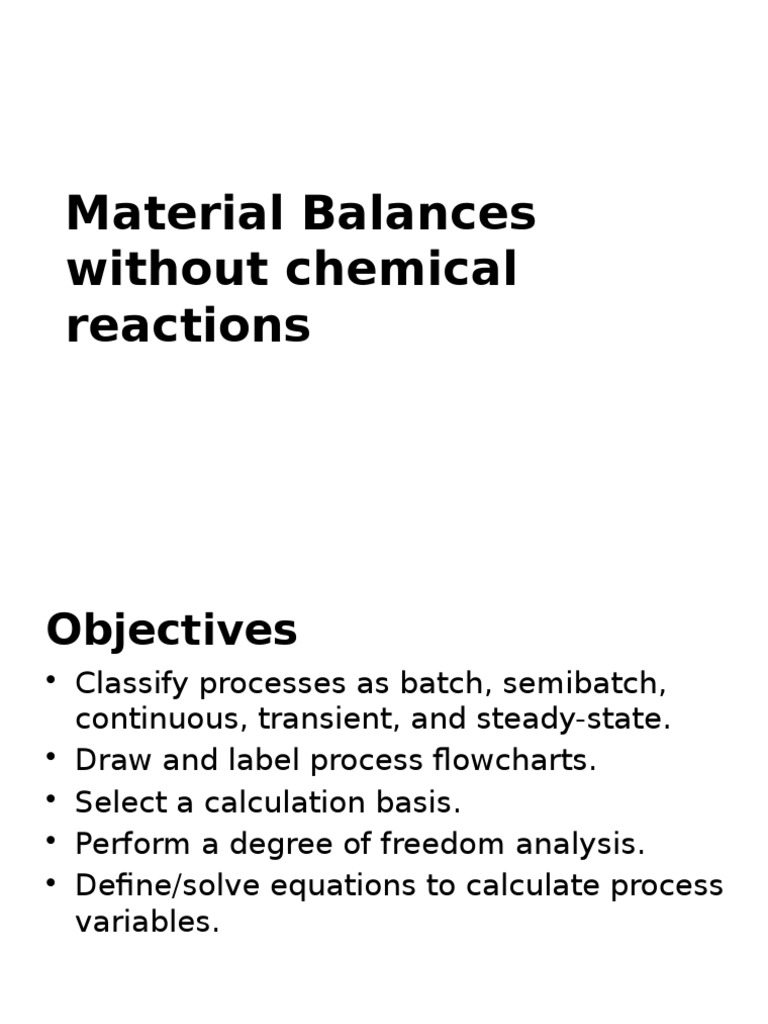 Material Balances Without Chemical Reaction Stoichiometry Solution